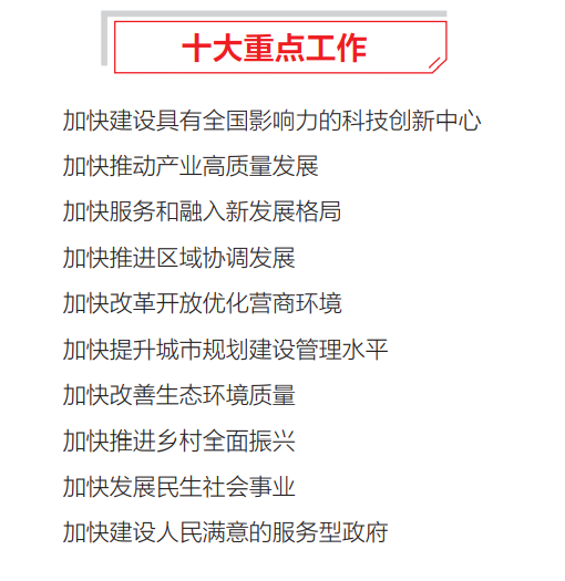 緊扣“民生幸福”,扎實推進共同富裕:提高經(jīng)濟發(fā)展的就業(yè)帶動力,實現(xiàn)居民收入增長與經(jīng)濟增長基本同步,推進優(yōu)質(zhì)公共服務(wù)均等可及,爭創(chuàng)國家醫(yī)學(xué)中心和國家區(qū)域醫(yī)療中心,全面推進鄉(xiāng)村振興。