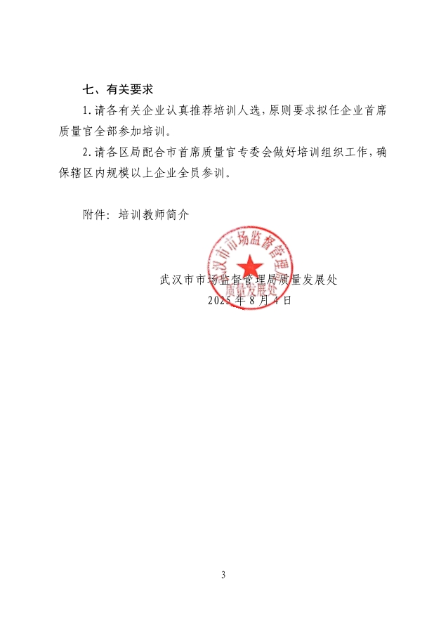 關(guān)于舉辦武漢市企業(yè)首席質(zhì)量官培訓(xùn)的通知(第十一期)